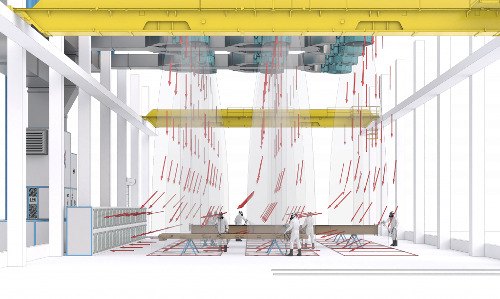 Зона открытой окраски — это комплекс, состоящий из специализированного оборудования и технологической вентиляции, предназначенный для выполнения окрасочных работ, в существующем или вновь возводимом цеховом пространстве. При этом не требуется возведение дополнительных ограждающих конструкций и создание дополнительной транспортной системы. Устройство Зоны открытой окраски — это самый современный и быстрый способ промышленной окраски.